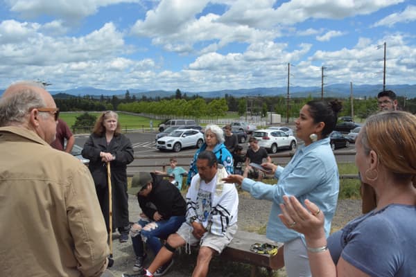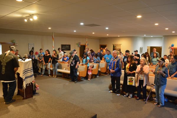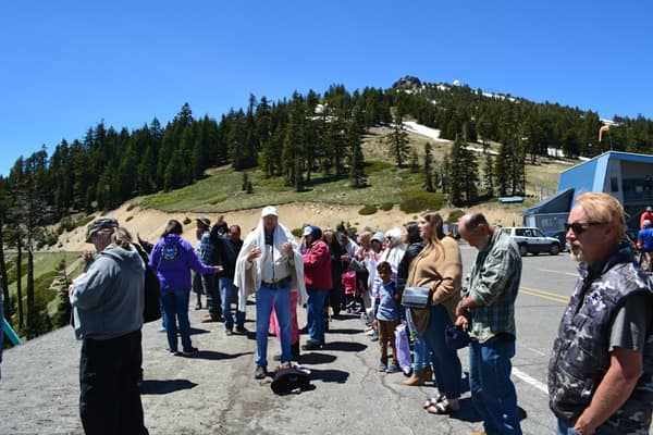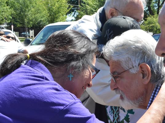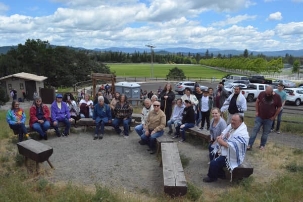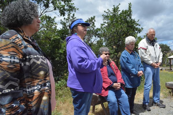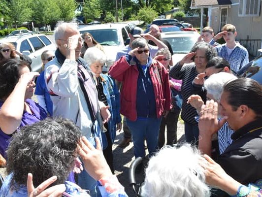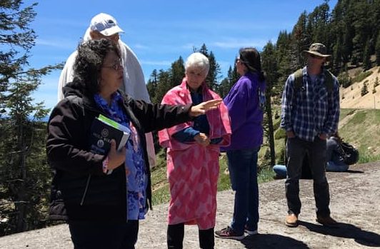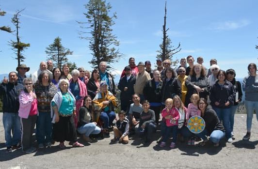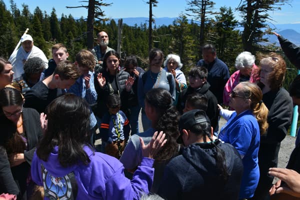 We continued to Ashland Mountain and prayed over the mountain, as there are unholy things that people have done or do on that mountain. Pastor Gaylene Gomez spoke and Liz Gomez let group prayer. Marilyn Bread led in a reconciliation prayer and asked me to sing “I Forgive You” from Cazaq the Eagle. As we sang and prayed Chairman Don Gentry from the Klamath Tribe came. Don Gentry, his wife Mary, and mother-in-law sang a song for us and welcomed us to their land.